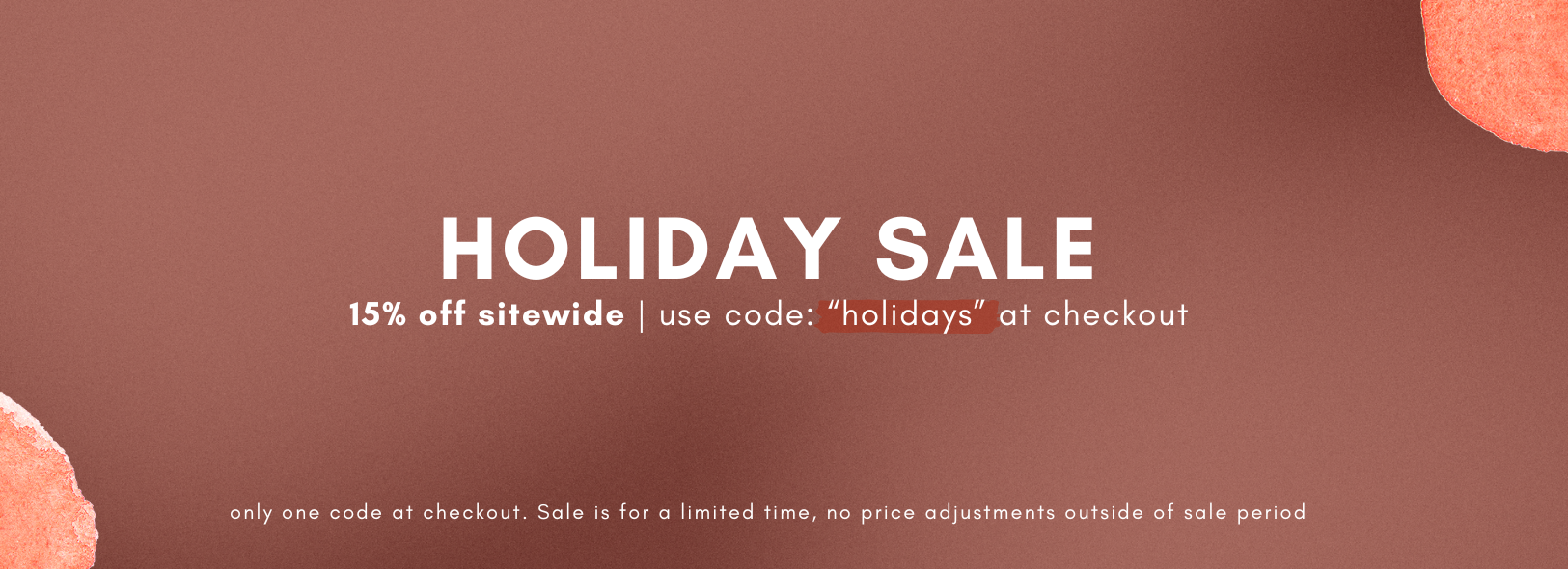 holiday sale ~ 15% OFF with code: "Holidays" at checkout